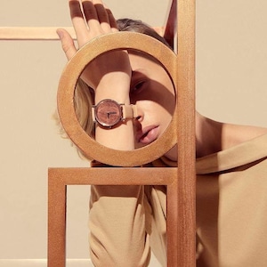 アイボリーウッドはブラックウォルナッツコレクションの一つです。明るいゴールドローズステンレスを素材としてセレクト。そして自然な象牙色のバンドと合わせました。このふたつの素材がくるみの木の優しく、すべすべした感触を活かしています。
